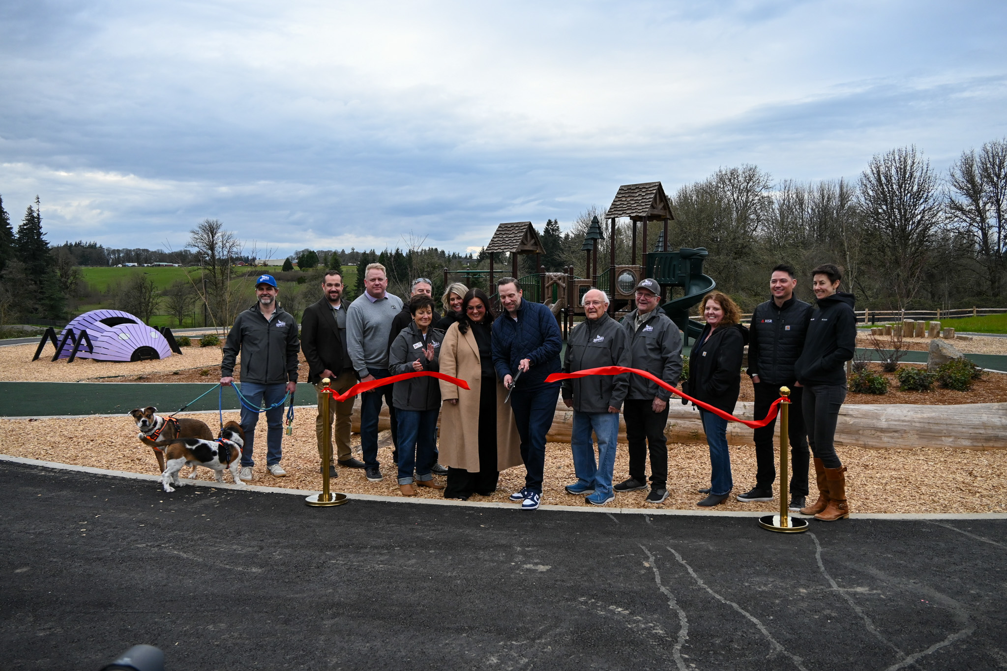 Ribbon Cutting for Storybook Hollow Park with members of City Council, HSR Capital, and McKay Sposito.Future phases will continue the Master Plan and introduce features such as soft-surface trails, restrooms, bird blinds, and an osprey pole, subject to funding availability.